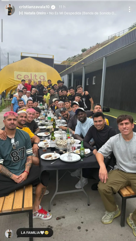 Cristián Zavala subió a sus historias de Instagram una reunión con sus compañeros campeones en Coquimbo, pero el detalle que nadie pasó por alto fue la música de fondo: “No es mi despedida”, el mismo tema que usó Jorge Almirón al dejar Colo Colo. 🎵 La elección no parece casual, y las letras añaden más leña al fuego: “Quisiera no decir adiós, pero debo marcharme”, dice parte de la canción, mientras el jugador escribió “familia” junto a la imagen.